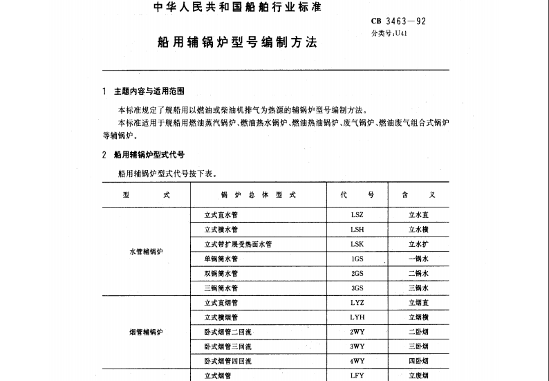 進(jìn)入二十一世紀(jì)以來(lái),隨著我國(guó)國(guó)民經(jīng)濟(jì)的高速發(fā)展,我國(guó)船用鍋爐行業(yè)保持了多年高速增長(zhǎng),并隨著我國(guó)加入WTO, 近年來(lái),船用鍋爐行業(yè)的出口也形勢(shì)喜人,2008年,全球金融危機(jī)爆發(fā),我國(guó)船用鍋爐行業(yè)發(fā)展也遇到了一些困難,如國(guó)內(nèi)需求下降,出口減少等,船用鍋爐行 業(yè)普遍出現(xiàn)了經(jīng)營(yíng)不景氣和利潤(rùn)下降的局面,2009年,隨著我國(guó)經(jīng)濟(jì)刺激計(jì)劃出臺(tái)和全球經(jīng)濟(jì)走出低谷,我國(guó)船用鍋爐行業(yè)也逐漸從金融危機(jī)的打擊中恢復(fù),重新進(jìn)入良性發(fā)展軌道。為了更好地理解、區(qū)別船用鍋爐各個(gè)型號(hào)以及名稱的含義中國(guó)船舶工業(yè)總公司603特提出了《中華人民共和國(guó)船舶行業(yè)標(biāo)準(zhǔn)--船用輔鍋爐型號(hào)編制方法》,以便從事船舶行業(yè)的人員有統(tǒng)一的標(biāo)準(zhǔn)可以參照、交流。