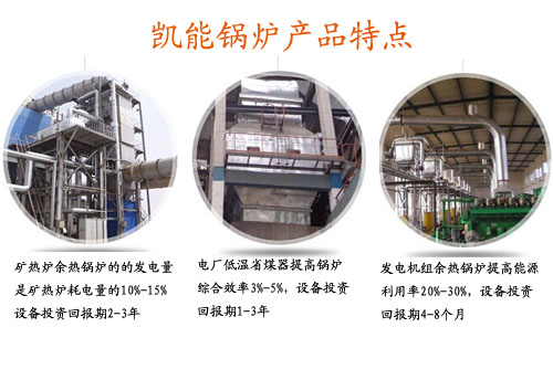 青島凱能主要生產(chǎn)礦熱爐余熱鍋爐、發(fā)電機組余熱鍋爐、電廠低溫省煤器、焦化爐余熱鍋爐、窯爐余熱鍋爐、燃油燃氣鍋爐、工業(yè)鍋爐省煤器、船用鍋爐、換熱器、加熱器、吹灰器11等大產(chǎn)品系列。公司會根據(jù)用戶的需求設(shè)計相應(yīng)的產(chǎn)品方案,并采用模塊化安裝方式,根據(jù)現(xiàn)場狀況進行合理布置,較大限度的為用戶節(jié)約安裝空間和經(jīng)濟成本。其中我公司生產(chǎn)的礦熱爐余熱鍋爐是礦熱爐耗電量的10%-15%,設(shè)備投資回報期是2-3年;電廠低溫省煤器提高鍋爐綜合效率3%-5%,設(shè)備投資回報期1-3年;發(fā)電機組余熱鍋爐提高能源利用率20%-30%,設(shè)備投資回報期4-8個月。
